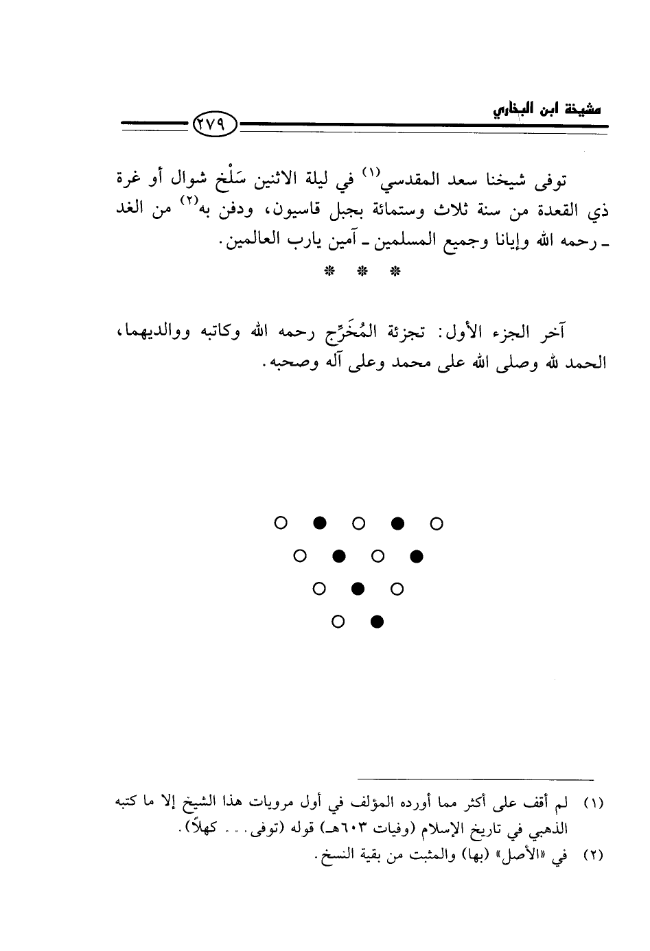 آخر الْجُزْء الأول: تجزئة الْمخْرج رَحمَه الله وكاتبه ووالديهما، الْحَمد لله وَصلى اللَّه على مُحَمَّد وعَلى آله وَصَحبه.