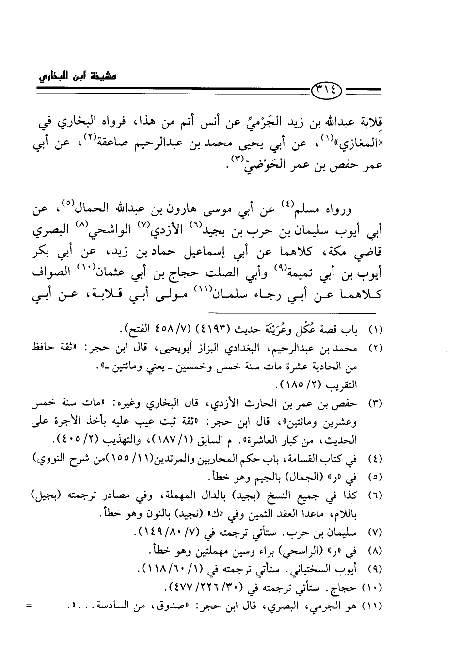 وَرَوَاهُ مُسْلِمٌ عَنْ أَبِي مُوسَى هَارُونَ بْنِ عَبْدِ اللَّهِ الْحَمَّالِ، عَنْ أَبِي أَيُّوبَ سُلَيْمَانَ بْنِ حَرْبِ بْنِ بُجَيْدٍ الْأَزْدِيِّ الْوَاشِحِيِّ الْبَصْرِيِّ قَاضِي مَكَّةَ، كِلَاهُمَا عَنْ أَبِي إِسْمَاعِيلَ حَمَّادِ بْنِ زَيْدٍ، عَنْ أَبِي بَكْرٍ أَيُّوبَ بْنِ أَبِي تَمِيمَةَ وَأَبِي الصَّلْتِ حَجَّاجِ بْنِ أَبِي عُثْمَانَ الصَّوَّافِ كِلَاهُمَا عَنْ أَبِي رَجَاءٍ سَلْمَانَ مَوْلَى أَبِي قِلَابَةَ، عَنْ أَبِي