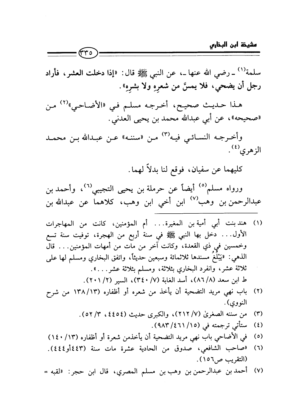 هَذَا حَدِيثٌ صَحِيح، أَخْرَجَهُ مُسْلِمٌ فِي " الْأَضَاحِي " مِنْ صَحِيحِهِ "، عَنْ أَبِي عَبْدِ اللَّهِ مُحَمَّدِ بْنِ يَحْيَى الْعَدَنِيِّ.