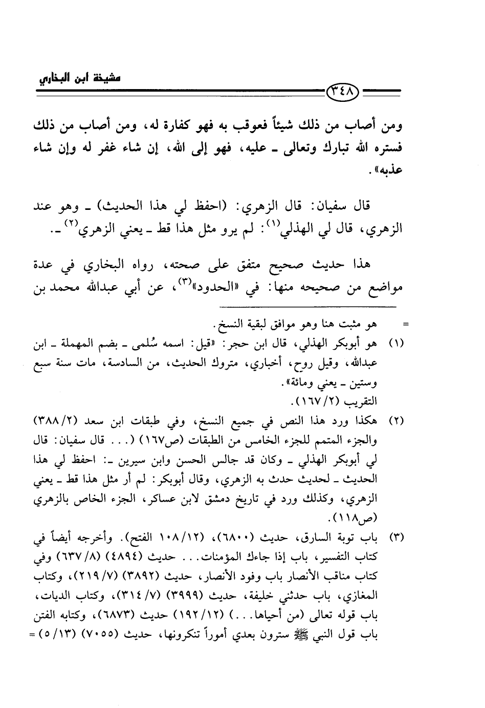 هَذَا حَدِيثٌ صَحِيح مُتَّفَقٌ عَلَى صِحَّتِهِ، رَوَاهُ الْبُخَارِيُّ فِي عِدَّةِ مَوَاضِعَ مِنْ صَحِيحِهِ مِنْهَا: فِي " الْحُدُودِ "، عَنْ أَبِي عَبْدِ اللَّهِ مُحَمَّد بن