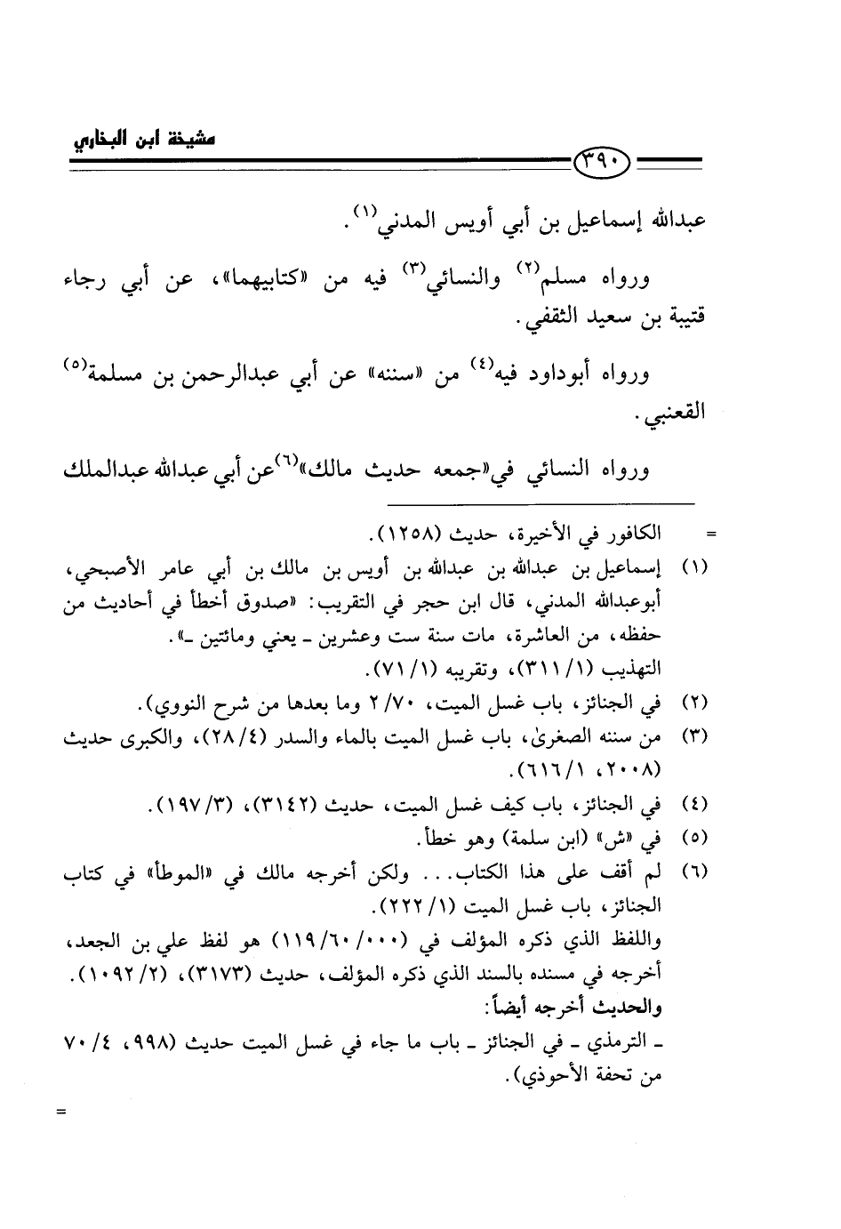 عَبْدِ اللَّهِ إِسْمَاعِيلَ بْنِ أَبِي أُوَيْسٍ الْمَدَنِيِّ.