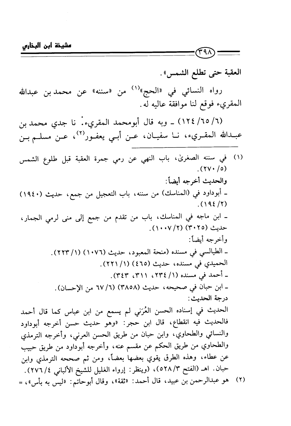 رَوَاهُ النَّسَائِيُّ فِي " الْحَجِّ " مِنْ " سُنَنِهِ " عَنْ مُحَمَّدِ بْنِ عَبْدِ الله المقريء فَوَقَعَ لَنَا مُوَافَقَةً عَالِيَةً لَهُ.