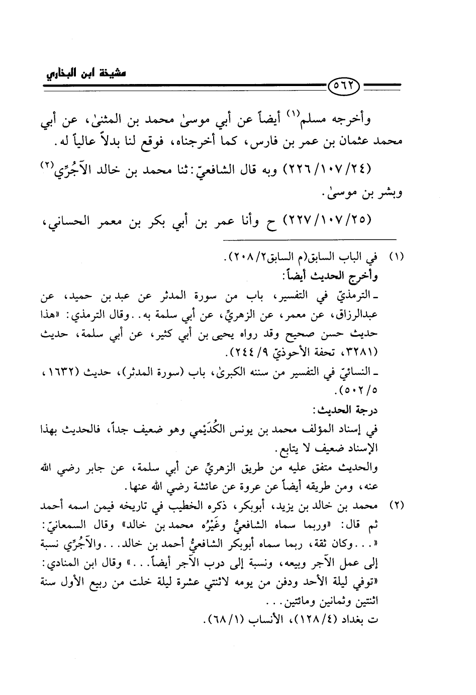 (24 / 107 / 226) - وَبِهِ قَالَ الشَّافِعِيُّ: ثَنَا مُحَمَّدُ بْنُ خَالِدٍ الْآجُرِّيُّ وَبِشْرُ بْنُ مُوسَى