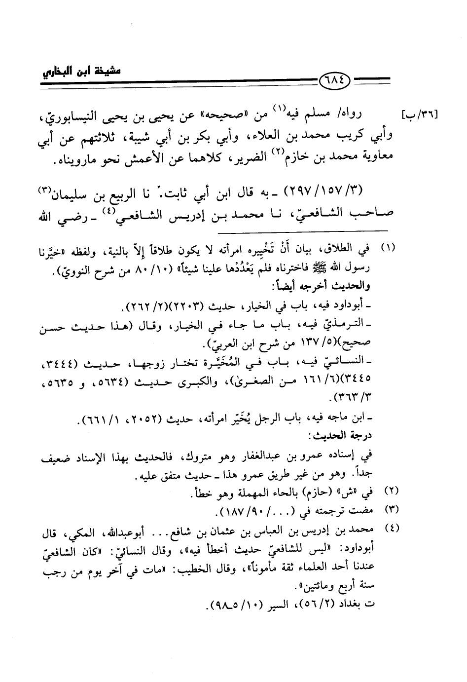 (3 / 157 / 297) - بِهِ قَالَ ابْنُ أَبِي ثَابِتٍ: نَا الرَّبِيعُ بْنُ سُلَيْمَانَ صَاحِبُ الشَّافِعِيِّ، نَا مُحَمَّدُ بْنُ إِدْرِيسَ الشَّافِعِيُّ - رَضِيَ اللَّهُ