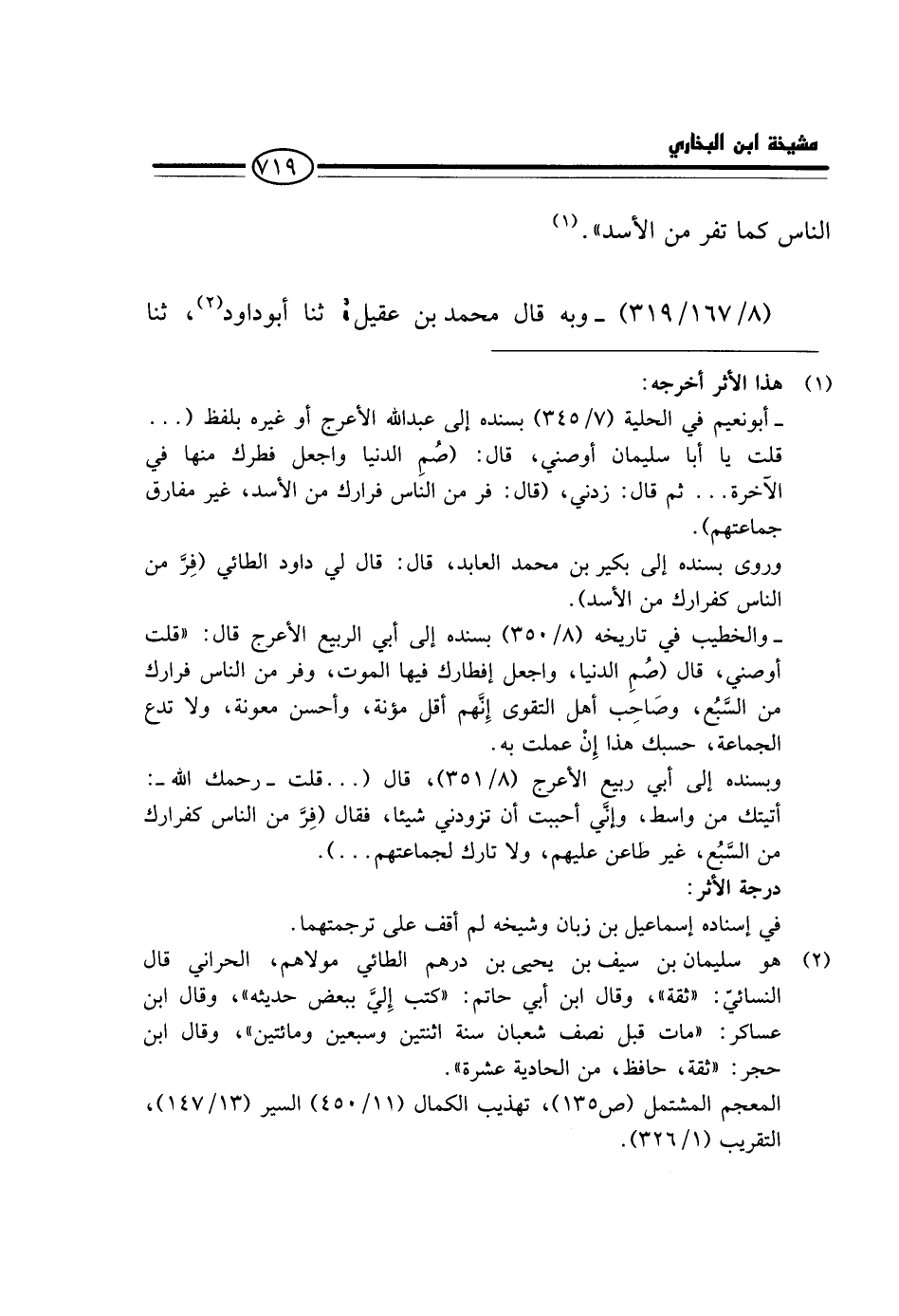 (8 / 167 / 319) - وَبِهِ قَالَ مُحَمَّدُ بْنُ عُقَيْلٍ: ثَنَا أَبُو دَاوُدَ، ثَنَا