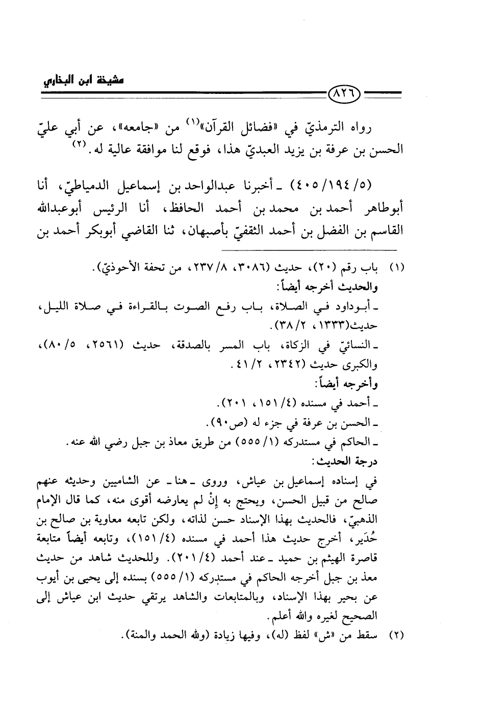 رَوَاهُ التِّرْمِذِيّ فِي " فَضَائِل الْقُرْآن " من " جَامعه "، عَنْ أَبِي عَلِيٍّ الْحَسَنِ بْنِ عَرَفَةَ بْنِ يزِيد الْعَبْدي هَذَا، فَوَقع لنا مُوَافقَة عالية لَهُ.