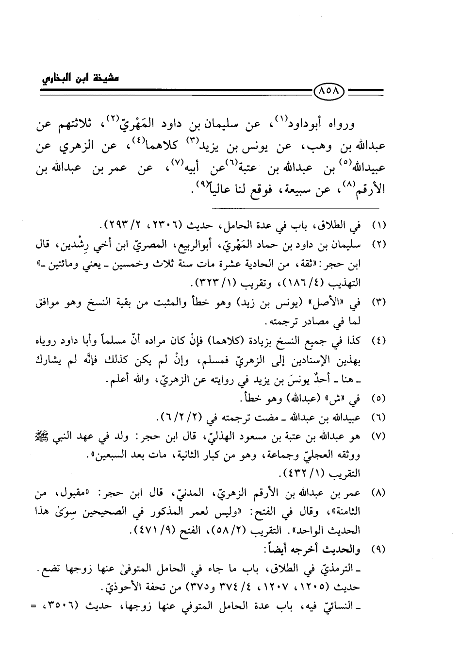 وَرَوَاهُ أَبُو دَاوُد، عَن سُلَيْمَان بن دَاوُد الْمهرِي، ثَلَاثَتهمْ عَن عبد الله بن وهب، عَن يُونُس بن يزِيد كِلَاهُمَا، عَن الزُّهْرِيّ عَن عبيد الله بن عبد الله بن عتبَة عَن أَبِيه، عَن عمر بن عبد الله بن الأرقم، عَن سبيعة، فَوَقع لنا عَالِيا.