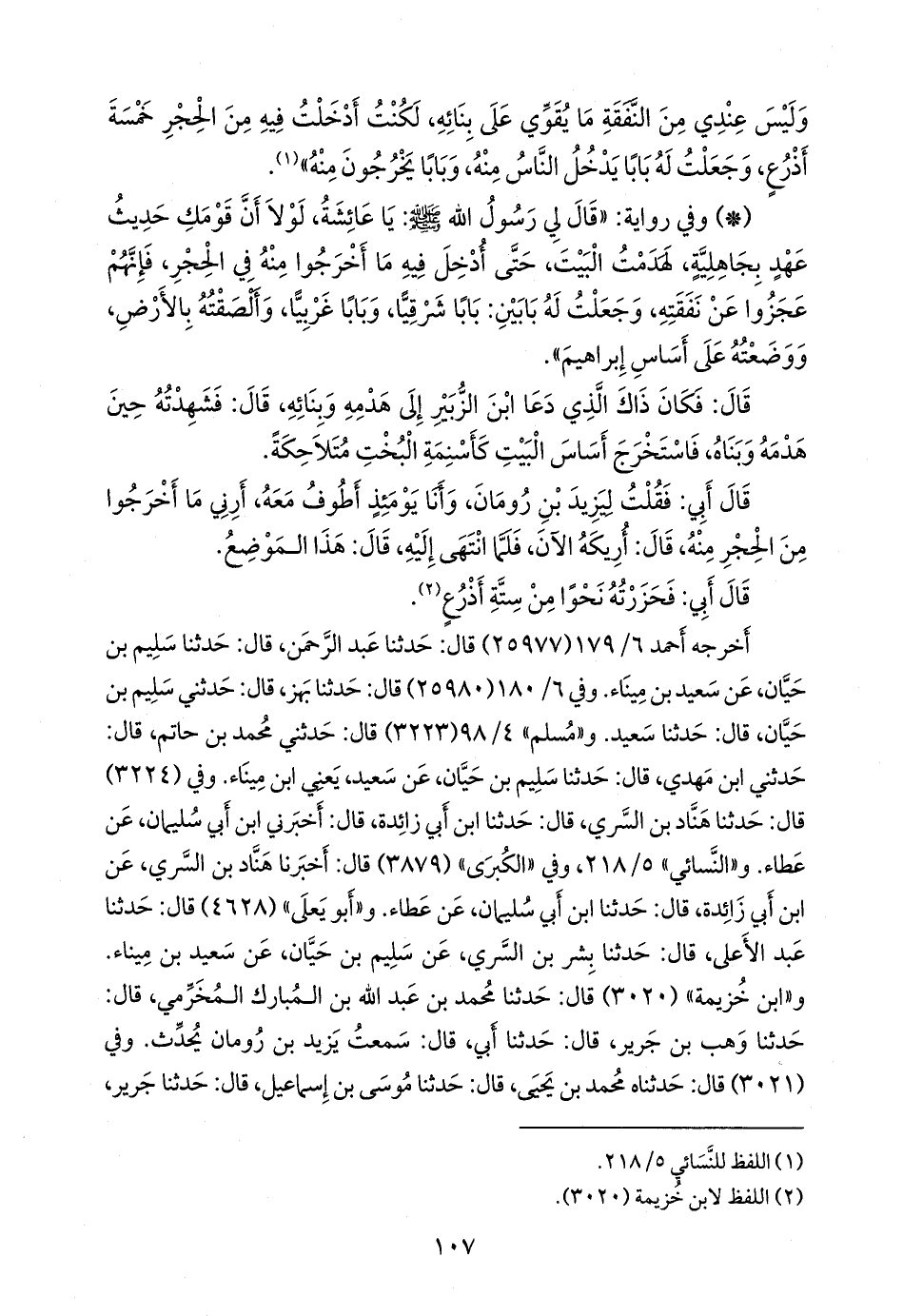 قال أبي: فقلت ليزيد بن رومان، وأنا يومئذ أطوف معه، أرني ما أخرجوا من الحجر منه، قال: أريكه الآن، فلما انتهى إليه، قال: هذا الموضع.
