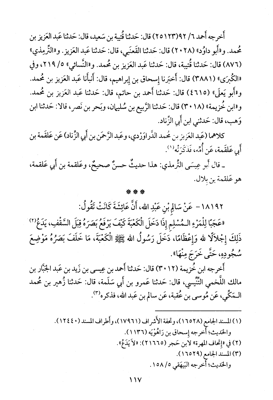 ١٨١٩٢ - عن سالم بن عبد الله، أن عائشة كانت تقول: