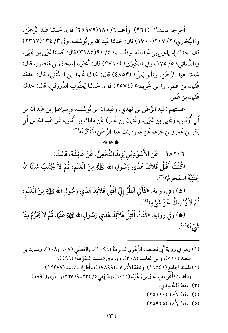 خمستهم (عبد الرَّحمَن بن مهدي، وعبد الله بن يوسف، وإسماعيل بن عبد الله بن أبي أويس، ويحيى بن يحيى، وعثمان بن عمر) عن مالك بن أنس، عن عبد الله بن أَبي بكر بن عَمرو بن حزم، عن عَمرَة بنت عبد الرَّحمَن، فذكرته (¬٢).