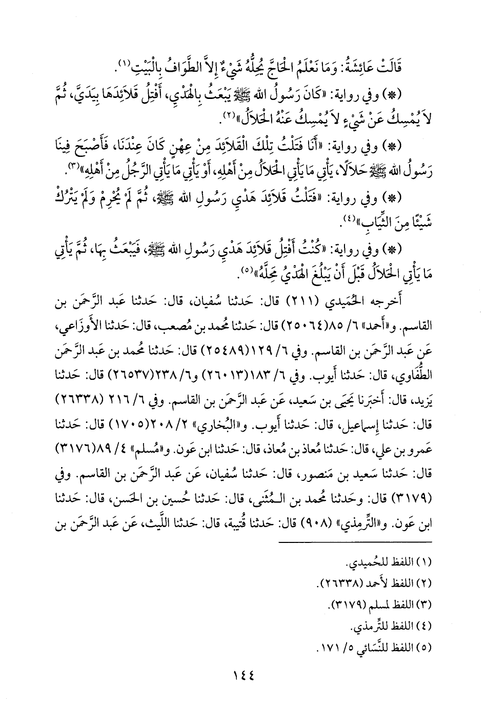 أخرجه الحُميدي (٢١١) قال: حدثنا سفيان، قال: حدثنا عبد الرَّحمَن بن القاسم. و «أحمد» ٦/ ٨٥ (٢٥٠٦٤) قال: حدثنا محمد بن مصعب، قال: حدثنا الأوزاعي، عن عبد الرَّحمَن بن القاسم. وفي ٦/ ١٢٩ (٢٥٤٨٩) قال: حدثنا محمد بن عبد الرَّحمَن الطفاوي، قال: حدثنا أيوب. وفي ٦/ ١٨٣ (٢٦٠١٣) و ٦/ ٢٣٨ (٢٦٥٣٧) قال: حدثنا يزيد، قال: أخبرنا يحيى بن سعيد، عن عبد الرَّحمَن بن القاسم. وفي ٦/ ٢١٦ (٢٦٣٣٨) قال: حدثنا إسماعيل، قال: حدثنا أيوب. و «البخاري» ٢/ ٢٠٨ (١٧٠٥) قال: حدثنا عَمرو بن علي، قال: حدثنا معاذ بن معاذ، قال: حدثنا ابن عَون. و «مسلم» ٤/ ٨٩ (٣١٧٦) قال: حدثنا سعيد بن منصور، قال: حدثنا سفيان، عن عبد الرَّحمَن بن القاسم. وفي (٣١٧٩) قال: وحدثنا محمد بن المثنى، قال: حدثنا حسين بن الحسن، قال: حدثنا ابن عَون. و «التِّرمِذي» (٩٠٨) قال: حدثنا قتيبة، قال: حدثنا الليث، عن عبد الرَّحمَن بن