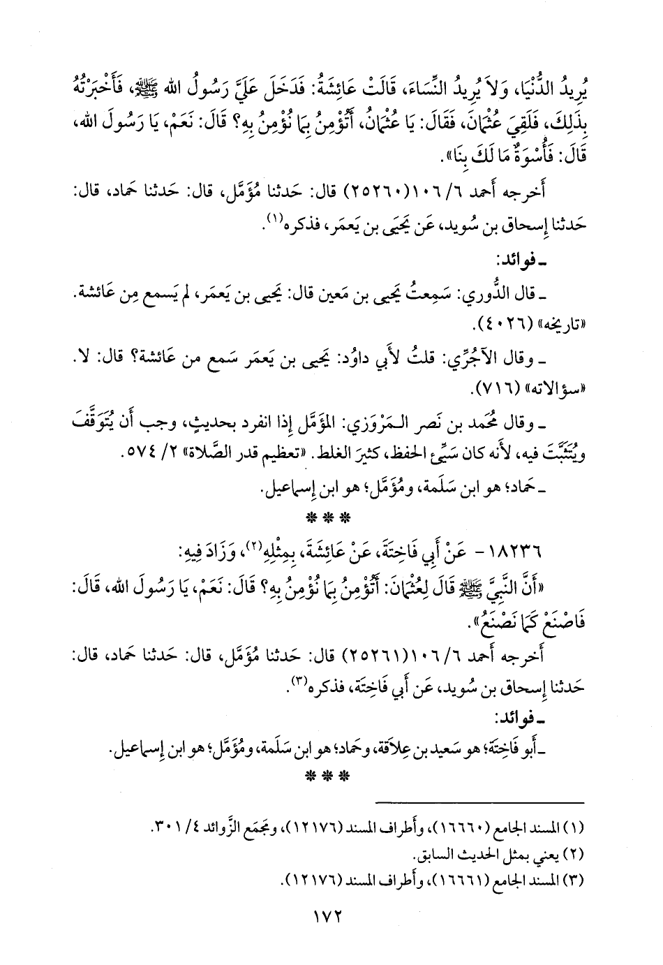 - حماد؛ هو ابن سلمة، ومُؤَمل؛ هو ابن إسماعيل.