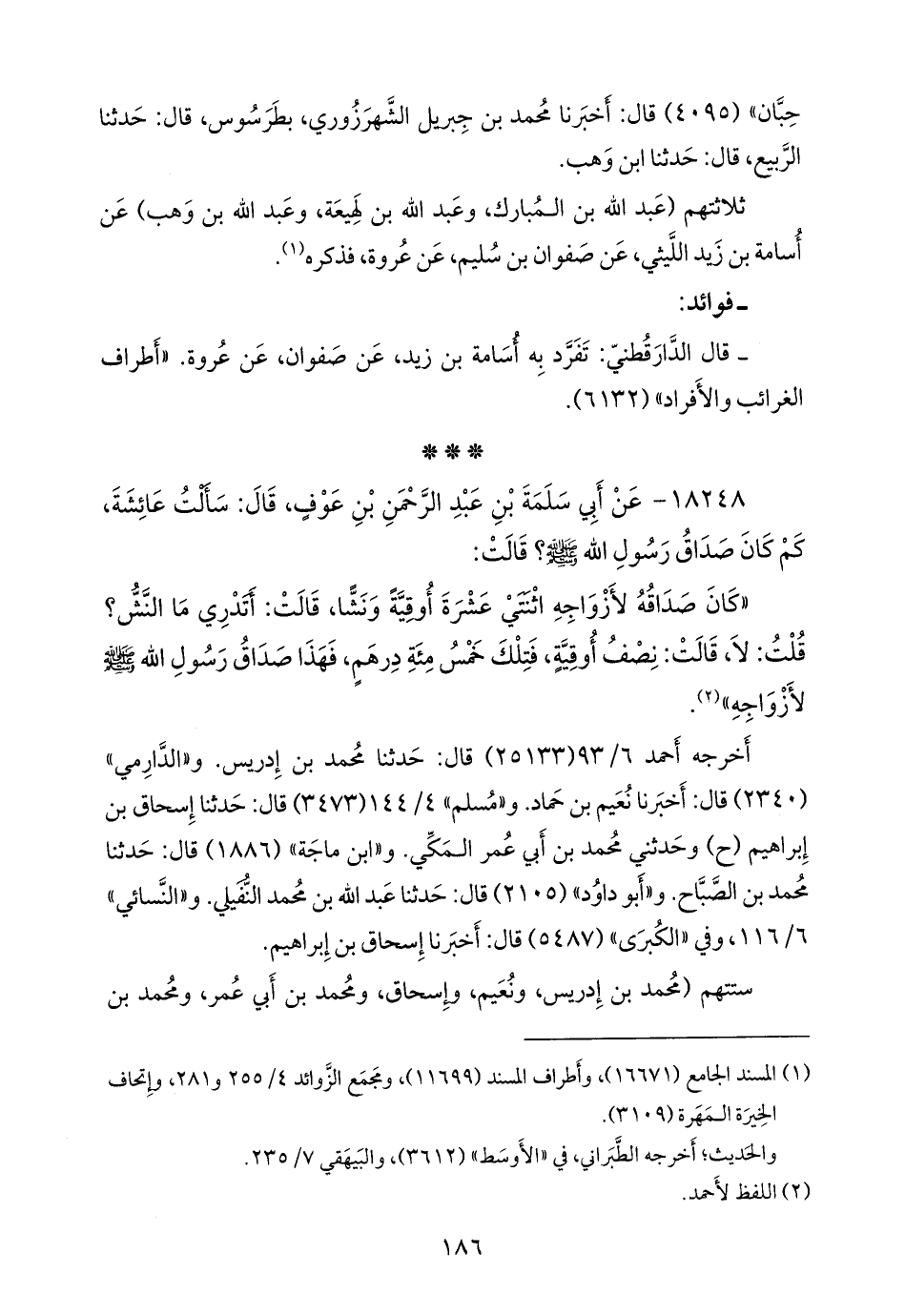 ١٨٢٤٨ - عن أبي سلمة بن عبد الرَّحمَن بن عوف، قال: سألت عائشة، كم كان صداق رسول الله صَلى الله عَليه وسَلم؟ قالت: