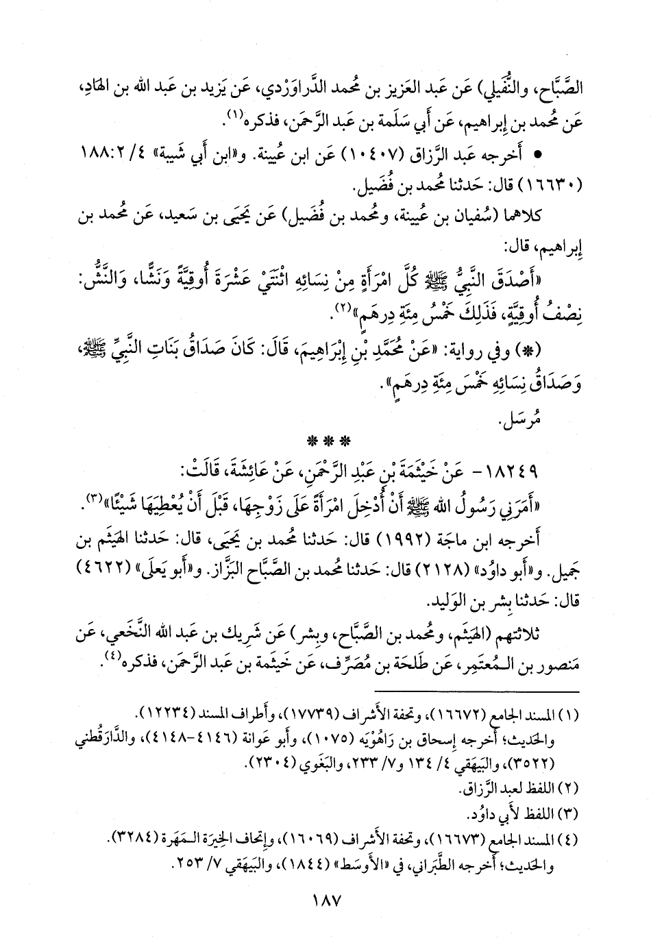 ثلاثتهم (الهيثم، ومحمد بن الصباح، وبشر) عن شريك بن عبد الله النَّخَعي، عن منصور بن المُعتَمِر، عن طلحة بن مُصَرِّف، عن خيثمة بن عبد الرَّحمَن، فذكره (¬٢).