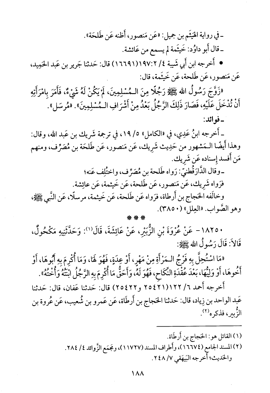 أخرجه أحمد (٢٥٤٢١ و ٢٥٤٢٢) قال: حدثنا عفان، قال: حدثنا عبد الواحد بن زياد، قال: حدثنا الحجاج بن أَرطَاة، عن عَمرو بن شعيب، عن عروة بن الزبير، فذكره (¬٢).