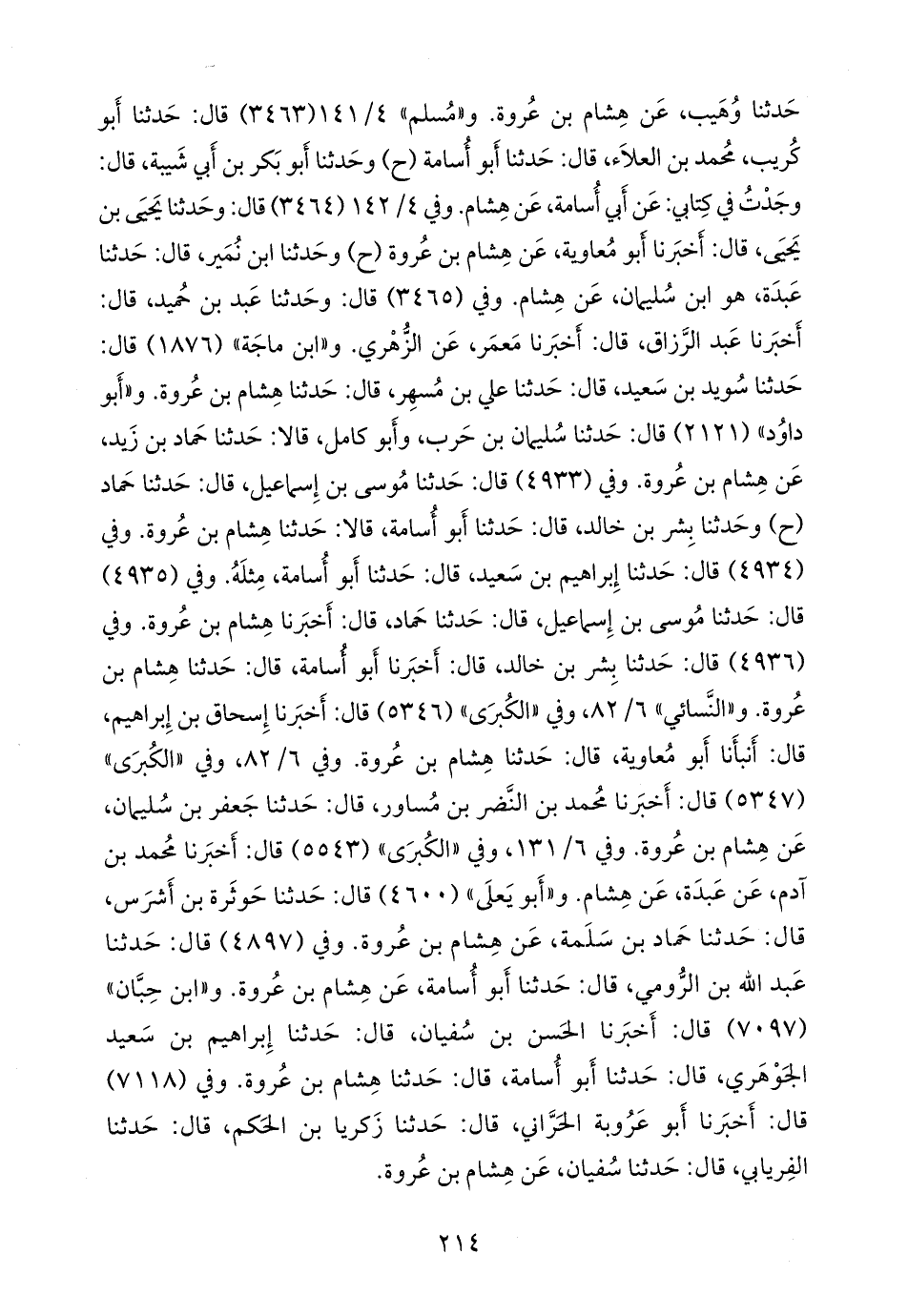 وفي (٤٨٩٧) قال: حدثنا عبد الله بن الرومي، قال: حدثنا أَبو أسامة، عن هشام بن عروة. و «ابن حِبَّان» (٧٠٩٧) قال: أخبرنا الحسن بن سفيان، قال: حدثنا إبراهيم بن سعيد الجوهري، قال: حدثنا أَبو أسامة، قال: حدثنا هشام بن عروة. وفي (٧١١٨) قال: أخبرنا أَبو عَروبَة الحراني، قال: حدثنا زكريا بن الحكم، قال: حدثنا الفريابي، قال: حدثنا سفيان، عن هشام بن عروة.