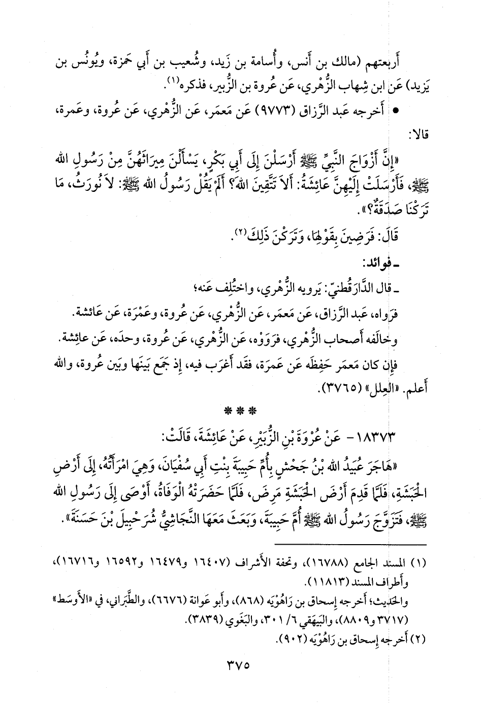 ١٨٣٧٣ - عن عروة بن الزبير، عن عائشة، قالت: