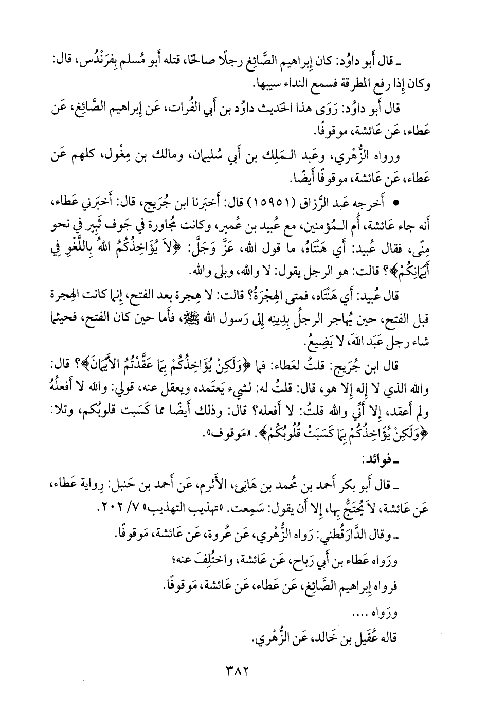 • أَخرجه عبد الرزاق (١٥٩٥١) قال: أخبرنا ابن جُريج، قال: أخبرني عطاء، أنه جاء عائشة، أُم المؤمنين، مع عُبيد بن عُمير، وكانت مجاورة في جوف ثبير في نحو منى، فقال عبيد: أي هنتاه، ما قول الله، عز وجل: {لا يؤاخذكم الله باللغو في أيمانكم}؟ قالت: هو الرجل يقول: لا والله، وبلى والله.