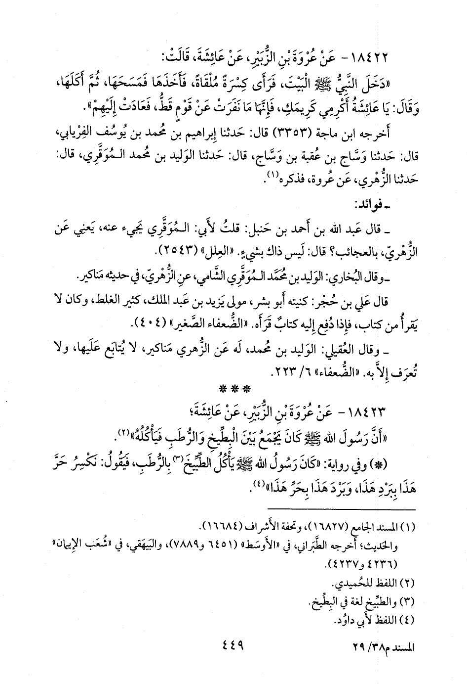١٨٤٢٣ - عن عروة بن الزبير، عن عائشة؛