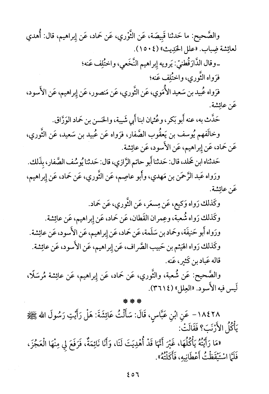 ١٨٤٢٨ - عن عبد الله بن عباس، قال: سألت عائشة: هل رأيت رسول الله صَلى الله عَليه وسَلم ياكل الأرنب؟ فقالت: