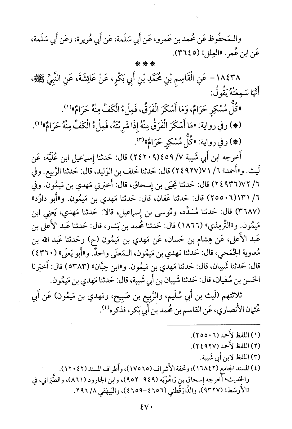 ثلاثتهم (ليث بن أبي سُلَيم، والربيع بن صَبيح، ومهدي بن ميمون) عن أبي عثمان الأَنصاري، عن القاسم بن محمد بن أَبي بكر، فذكره (¬٤).