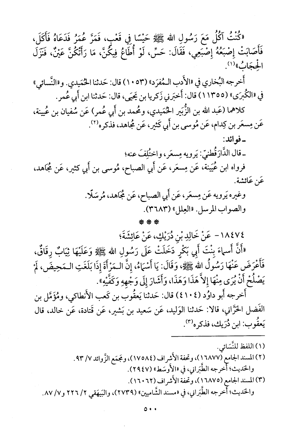 ١٨٤٧٤ - عن خالد بن دريك، عن عائشة؛