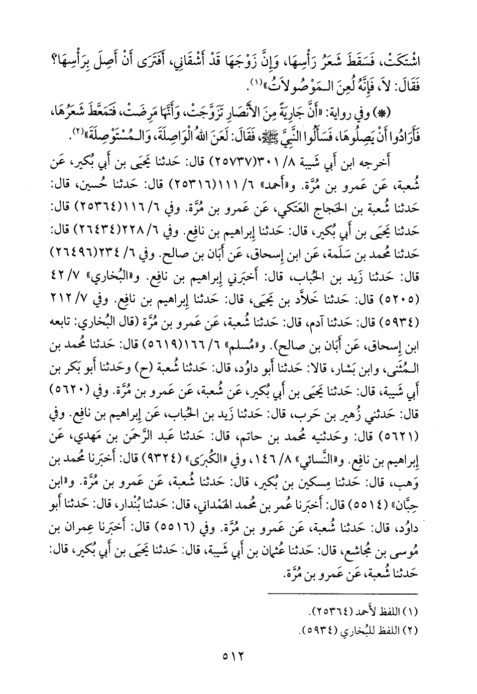 وفي ٧/ ٢١٢ (٥٩٣٤) قال: حدثنا آدم، قال: حدثنا شعبة، عن عَمرو بن مُرَّة (قال البخاري: تابعه ابن إسحاق، عن أبان بن صالح). و «مسلم» ٦/ ١٦٦ (٥٦١٩) قال: حدثنا محمد بن المثنى، وابن بشار، قالا: حدثنا أَبو داود، قال: حدثنا شعبة (ح) وحدثنا أَبو بكر بن أبي شيبة، قال: حدثنا يحيى بن أبي بكير، عن شعبة، عن عَمرو بن مُرَّة. وفي (٥٦٢٠) قال: حدثني زهير بن حرب، قال: حدثنا زيد بن الحُبَاب، عن إبراهيم بن نافع. وفي (٥٦٢١) قال: وحدثنيه محمد بن حاتم، قال: حدثنا عبد الرَّحمَن بن مهدي، عن إبراهيم بن نافع. و «النَّسَائي» ٨/ ١٤٦، وفي «الكبرى» (٩٣٢٤) قال: أخبرنا محمد بن وهب، قال: حدثنا مسكين بن بكير، قال: حدثنا شعبة، عن عَمرو بن مُرَّة. و «ابن حِبَّان» (٥٥١٤) قال: أخبرنا عمر بن محمد الهمداني، قال: حدثنا بُندَار، قال: حدثنا أَبو داود، قال: حدثنا شعبة، عن عَمرو بن مُرَّة. وفي (٥٥١٦) قال: أخبرنا عمران بن موسى بن مجاشع، قال: حدثنا عثمان بن أبي شيبة، قال: حدثنا يحيى بن أبي بكير، قال: حدثنا شعبة، عن عَمرو بن مُرَّة.