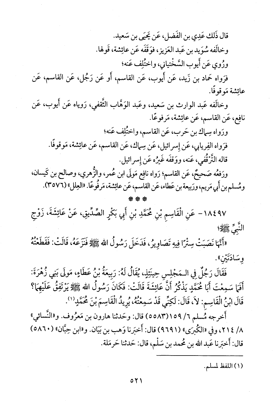١٨٤٩٧ - عن القاسم بن محمد بن أَبي بكر الصِّدِّيق، عن عائشة، زوج النبي صَلى الله عَليه وسَلم؛