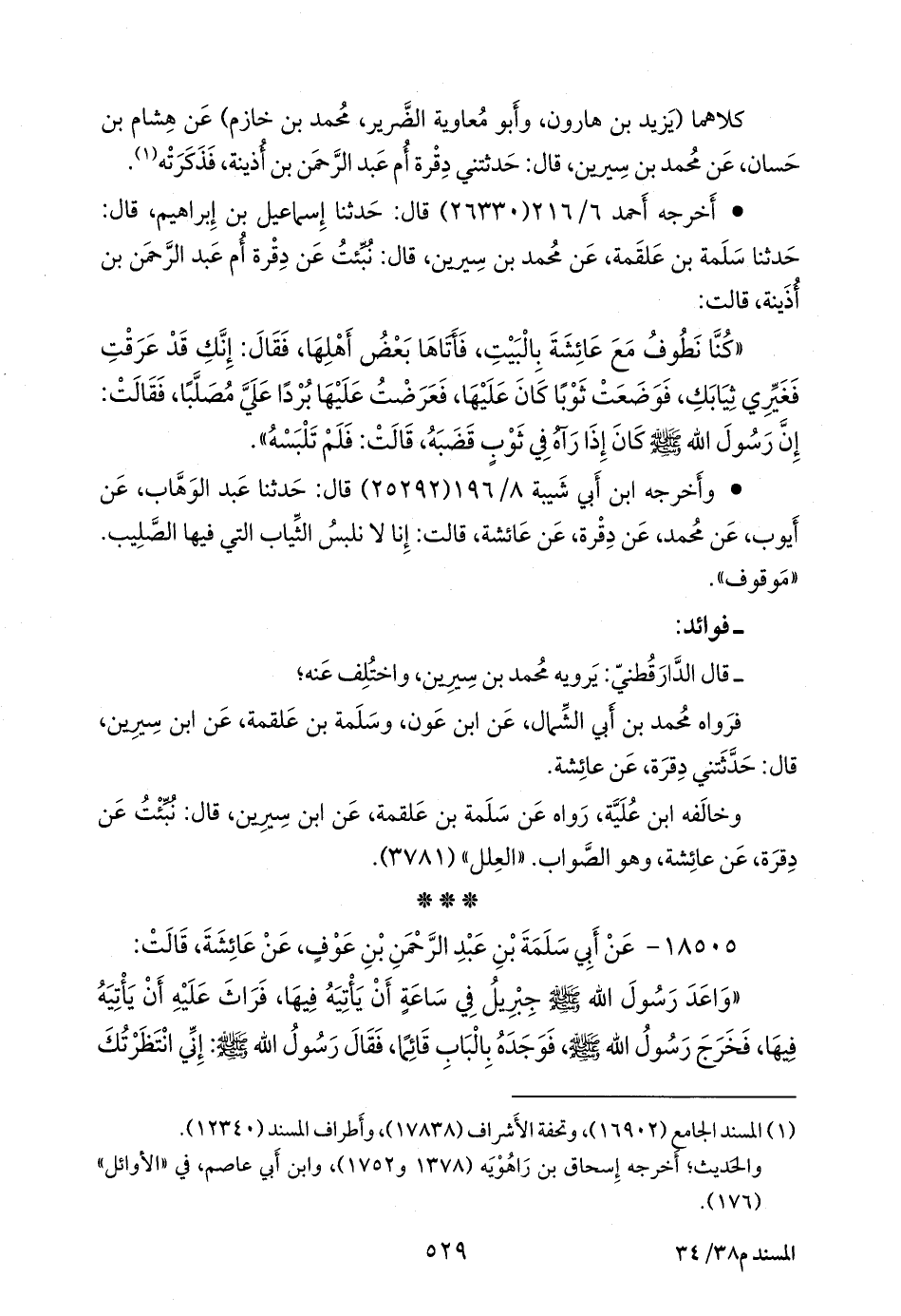 كلاهما (يزيد بن هارون، وأَبو معاوية الضرير، محمد بن خازم) عن هشام بن حسان، عن محمد بن سِيرين، قال: حدثتني دقرة أم عبد الرَّحمَن بن أذينة، فذكرته (¬١).