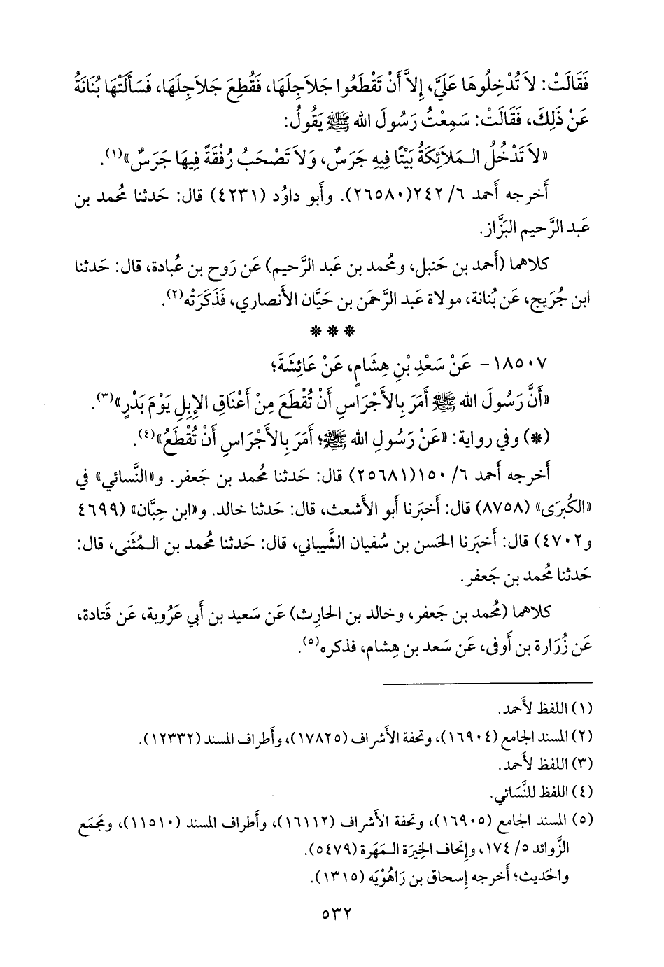 (¬٣) المسند الجامع (١٦٩٠٥)، وتحفة الأشراف (١٦١١٢)، وأطراف المسند (١١٥١٠)، ومَجمَع الزوائد ٥/ ١٧٤، وإتحاف الخِيرَة المَهَرة (٥٤٧٩).
