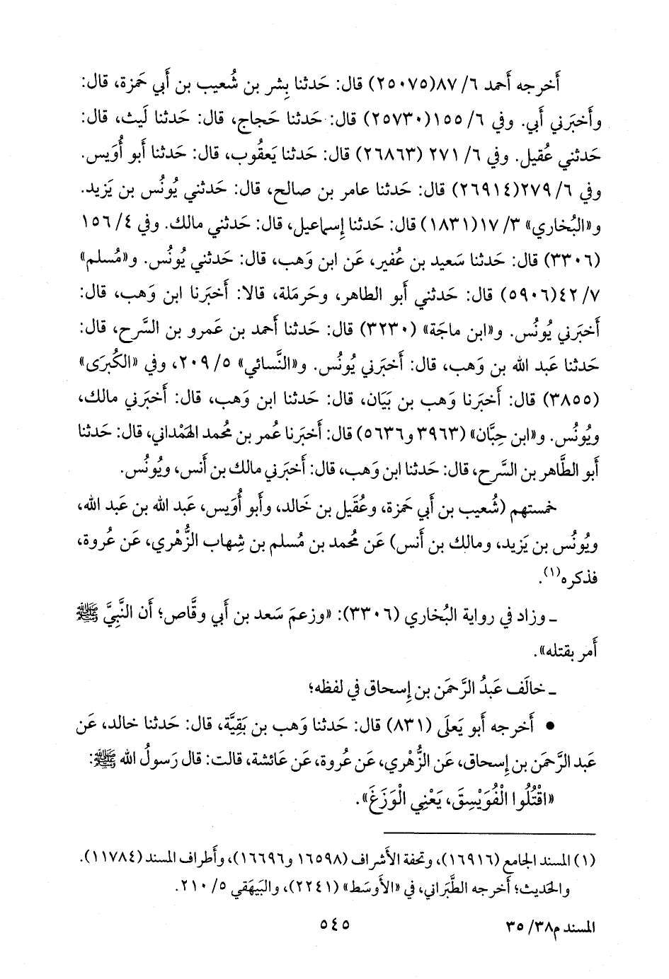 و «النَّسَائي» ٥/ ٢٠٩، وفي «الكبرى» (٣٨٥٥) قال: أخبرنا وهب بن بيان، قال: حدثنا ابن وهب، قال: أخبرني مالك، ويونس. و «ابن حِبَّان» (٣٩٦٣ و ٥٦٣٦) قال: أخبرنا عمر بن محمد الهمداني، قال: حدثنا أَبو الطاهر بن السَّرح، قال: حدثنا ابن وهب، قال: أخبرني مالك بن أنس، ويونس.