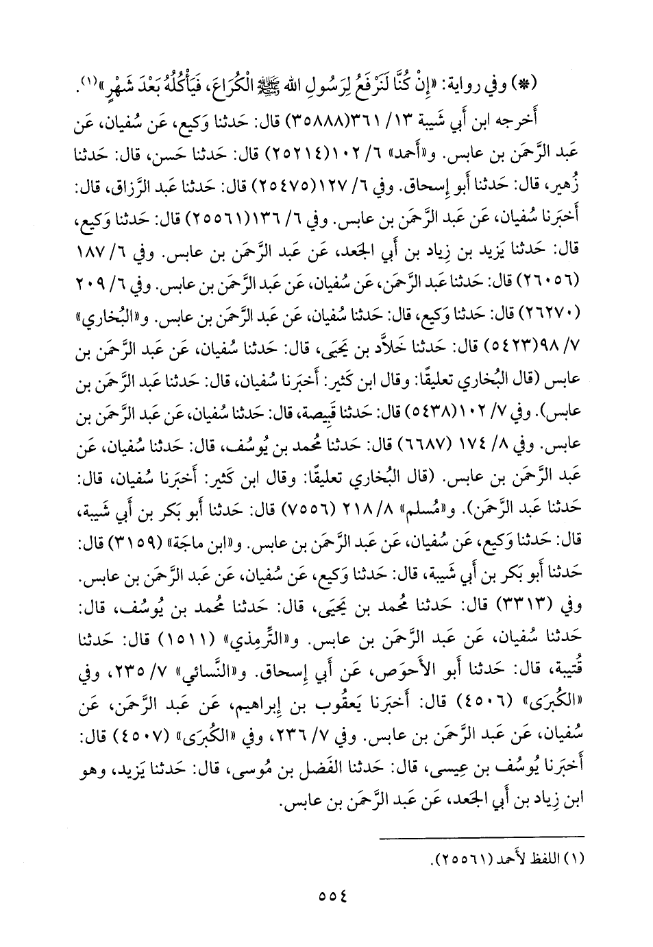 و «ابن ماجة» (٣١٥٩) قال: حدثنا أَبو بكر بن أبي شيبة، قال: حدثنا وكيع، عن سفيان، عن عبد الرَّحمَن بن عابس. وفي (٣٣١٣) قال: حدثنا محمد بن يحيى، قال: حدثنا محمد بن يوسف، قال: حدثنا سفيان، عن عبد الرَّحمَن بن عابس. و «التِّرمِذي» (١٥١١) قال: حدثنا قتيبة، قال: حدثنا أَبو الأحوص، عن أبي إسحاق. و «النَّسَائي» ٧/ ٢٣٥، وفي «الكبرى» (٤٥٠٦) قال: أخبرنا يعقوب بن إبراهيم، عن عبد الرَّحمَن، عن سفيان، عن عبد الرَّحمَن بن عابس. وفي ٧/ ٢٣٦، وفي «الكبرى» (٤٥٠٧) قال: أخبرنا يوسف بن عيسى، قال: حدثنا الفضل بن موسى، قال: حدثنا يزيد، وهو ابن زياد بن أبي الجعد، عن عبد الرَّحمَن بن عابس.