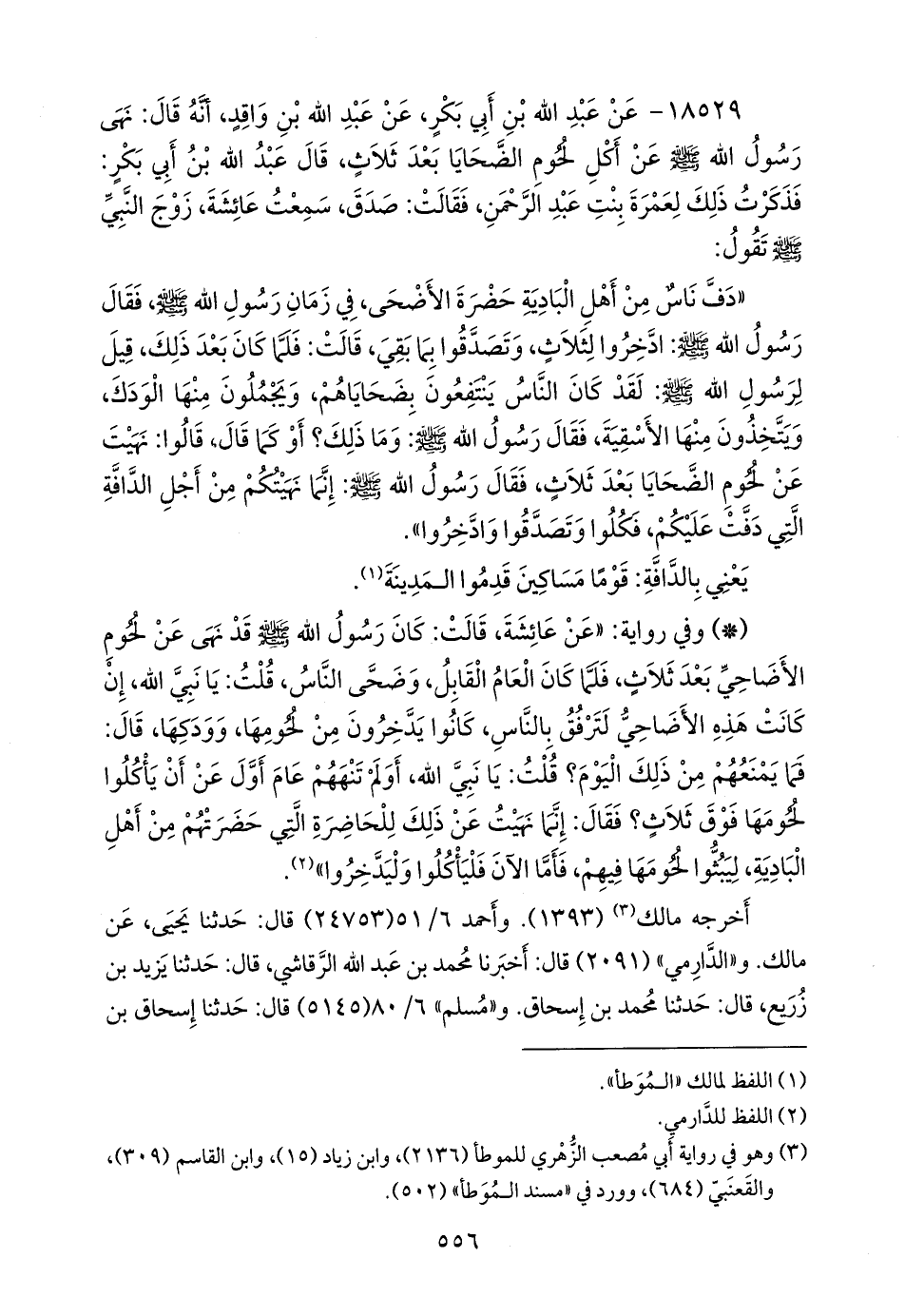 ١٨٥٢٩ - عن عبد الله بن أَبي بكر، عن عبد الله بن واقد، أنه قال: نهى رسول الله صَلى الله عَليه وسَلم عن أكل لحوم الضحايا بعد ثلاث، قال عبد الله بن أَبي بكر: فذكرت ذلك لعمرة بنت عبد الرَّحمَن، فقالت: صدق، سمعت عائشة، زوج النبي صَلى الله عَليه وسَلم تقول: