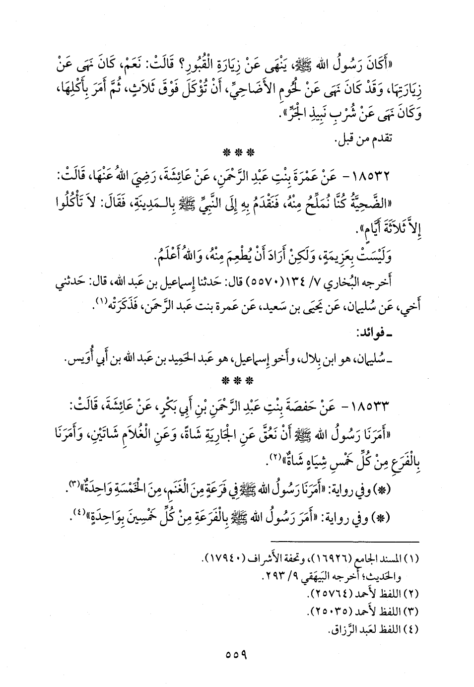 ١٨٥٣٣ - عن حفصة بنت عبد الرَّحمَن بن أَبي بكر، عن عائشة، قالت: