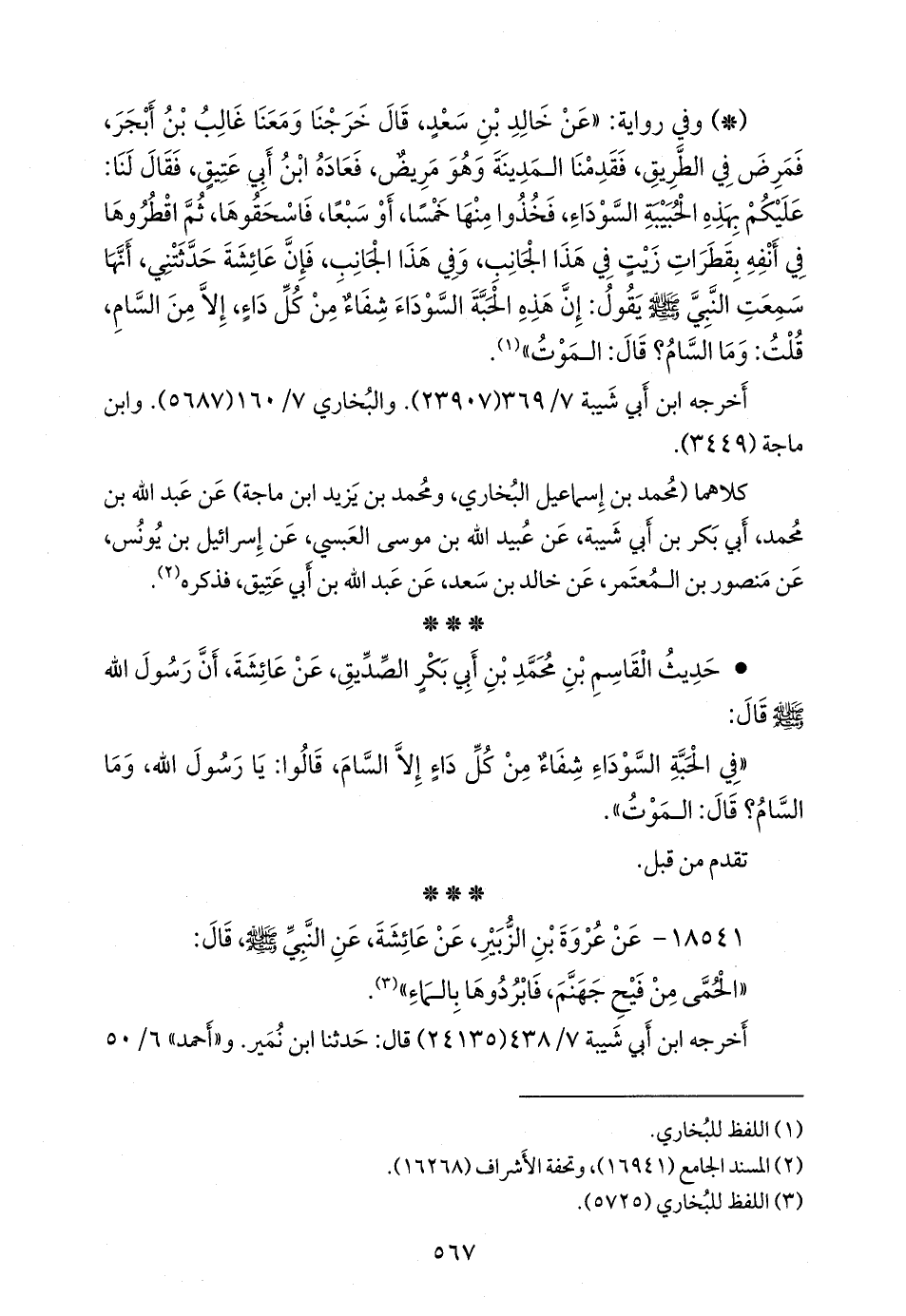 «في الحبة السوداء شفاء من كل داء إلا السام، قالوا: يا رسول الله، وما السام؟ قال: الموت».