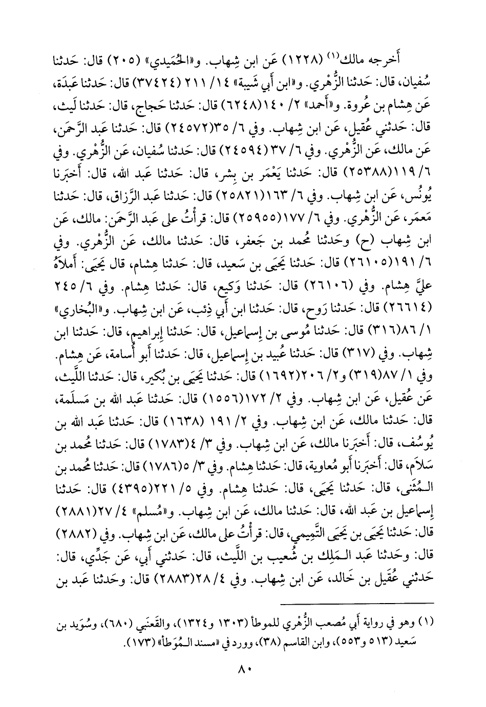 أخرجه مالك (¬١) (١٢٢٨) عن ابن شهاب. و «الحميدي» (٢٠٥) قال: حدثنا سفيان، قال: حدثنا الزُّهْري. و «ابن أبي شيبة» (٣٧٤٢٤) قال: حدثنا عبدة، عن هشام بن عروة. و «أحمد» ٢/ ١٤٠ (٦٢٤٨) قال: حدثنا حجاج، قال: حدثنا ليث، قال: حدثني عُقيل، عن ابن شهاب. وفي ٦/ ٣٥ (٢٤٥٧٢) قال: حدثنا عبد الرَّحمَن، عن مالك، عن الزُّهْري. وفي ٦/ ٣٧ (٢٤٥٩٤) قال: حدثنا سفيان، عن الزُّهْري. وفي ٦/ ١١٩ (٢٥٣٨٨) قال: حدثنا يعمر بن بشر، قال: حدثنا عبد الله، قال: أخبرنا يونس، عن ابن شهاب. وفي ٦/ ١٦٣ (٢٥٨٢١) قال: حدثنا عبد الرزاق، قال: حدثنا مَعمَر، عن الزُّهْري. وفي ٦/ ١٧٧ (٢٥٩٥٥) قال: قرأتُ على عبد الرَّحمَن: مالك، عن ابن شهاب (ح) وحدثنا محمد بن جعفر، قال: حدثنا مالك، عن الزُّهْري. وفي ٦/ ١٩١ (٢٦١٠٥) قال: حدثنا يحيى بن سعيد، قال: حدثنا هشام، قال يحيى: أملاه علي هشام. وفي (٢٦١٠٦) قال: حدثنا وكيع، قال: حدثنا هشام. وفي ٦/ ٢٤٥ (٢٦٦١٤) قال: حدثنا روح، قال: حدثنا ابن أبي ذِئب، عن ابن شهاب. و «البخاري» ١/ ٨٦ (٣١٦) قال: حدثنا موسى بن إسماعيل، قال: حدثنا إبراهيم، قال: حدثنا ابن شهاب. وفي (٣١٧) قال: حدثنا عبيد بن إسماعيل، قال: حدثنا أَبو أسامة، عن هشام. وفي ١/ ٨٧ (٣١٩) و ٢/ ٢٠٦ (١٦٩٢) قال: حدثنا يحيى بن بُكير، قال: حدثنا الليث، عن عُقيل، عن ابن شهاب. وفي ٢/ ١٧٢ (١٥٥٦) قال: حدثنا عبد الله بن مَسلَمة، قال: حدثنا مالك، عن ابن شهاب. وفي ٢/ ١٩١ (١٦٣٨) قال: حدثنا عبد الله بن يوسف، قال: أخبرنا مالك، عن ابن شهاب. وفي ٣/ ٤ (١٧٨٣) قال: حدثنا محمد بن سَلَام، قال: أخبرنا أَبو معاوية، قال: حدثنا هشام. وفي ٣/ ٥ (١٧٨٦) قال: حدثنا محمد بن المثنى، قال: حدثنا يحيى، قال: حدثنا هشام. وفي ٥/ ٢٢١ (٤٣٩٥) قال: حدثنا إسماعيل بن عبد الله، قال: حدثنا مالك، عن ابن شهاب. و «مسلم» ٤/ ٢٧ (٢٨٨١) قال: حدثنا يحيى بن يحيى التميمي، قال: قرأتُ على مالك، عن ابن شهاب. وفي (٢٨٨٢) قال: وحدثنا عبد الملك بن شعيب بن الليث، قال: حدثني أبي، عن جدي، قال: حدثني عُقيل بن خالد، عن ابن شهاب. وفي ٤/ ٢٨ (٢٨٨٣) قال: وحدثنا عبد بن
