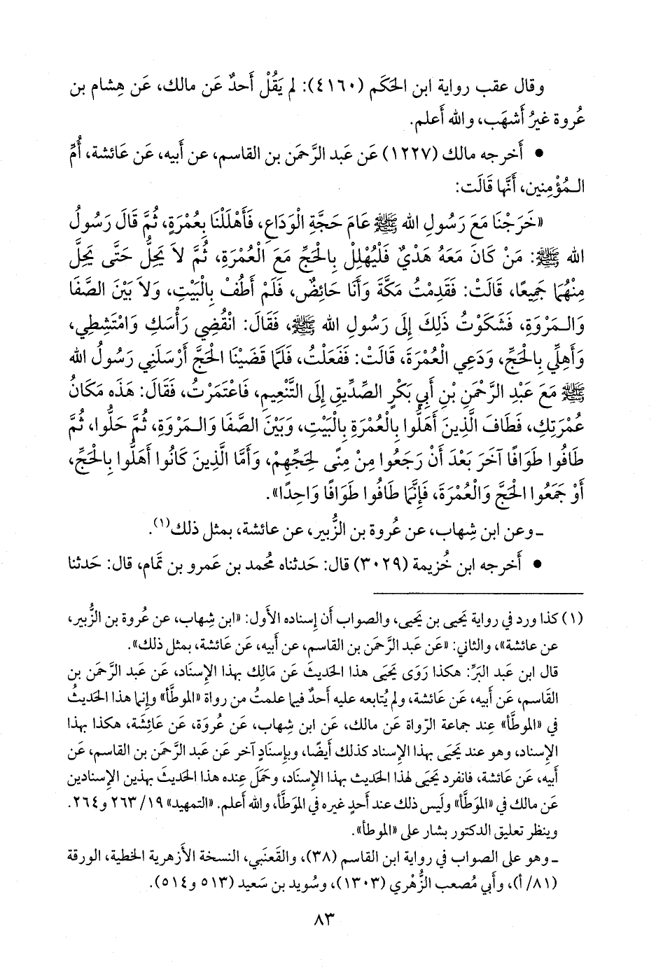 قال ابن عبد البَر: هكذا روى يحيى هذا الحديث عن مالك بهذا الإسناد، عن عبد الرَّحمَن بن القاسم، عن أبيه، عن عائشة، ولم يتابعه عليه أحد فيما علمت من رواة «الموطأ» وإنما هذا الحديث في «الموطأ» عند جماعة الرواة عن مالك، عن ابن شهاب، عن عروة، عن عائشة، هكذا بهذا الإسناد، وهو عند يحيى بهذا الإسناد كذلك أيضا، وبإسناد آخر عن عبد الرَّحمَن بن القاسم، عن أبيه، عن عائشة، فانفرد يحيى لهذا الحديث بهذا الإسناد، وحمل عنده هذا الحديث بهذين الإسنادين عن مالك في «الموطأ» وليس ذلك عند أحد غيره في الموطأ، والله أعلم. «التمهيد» ١٩/ ٢٦٣ و ٢٦٤.