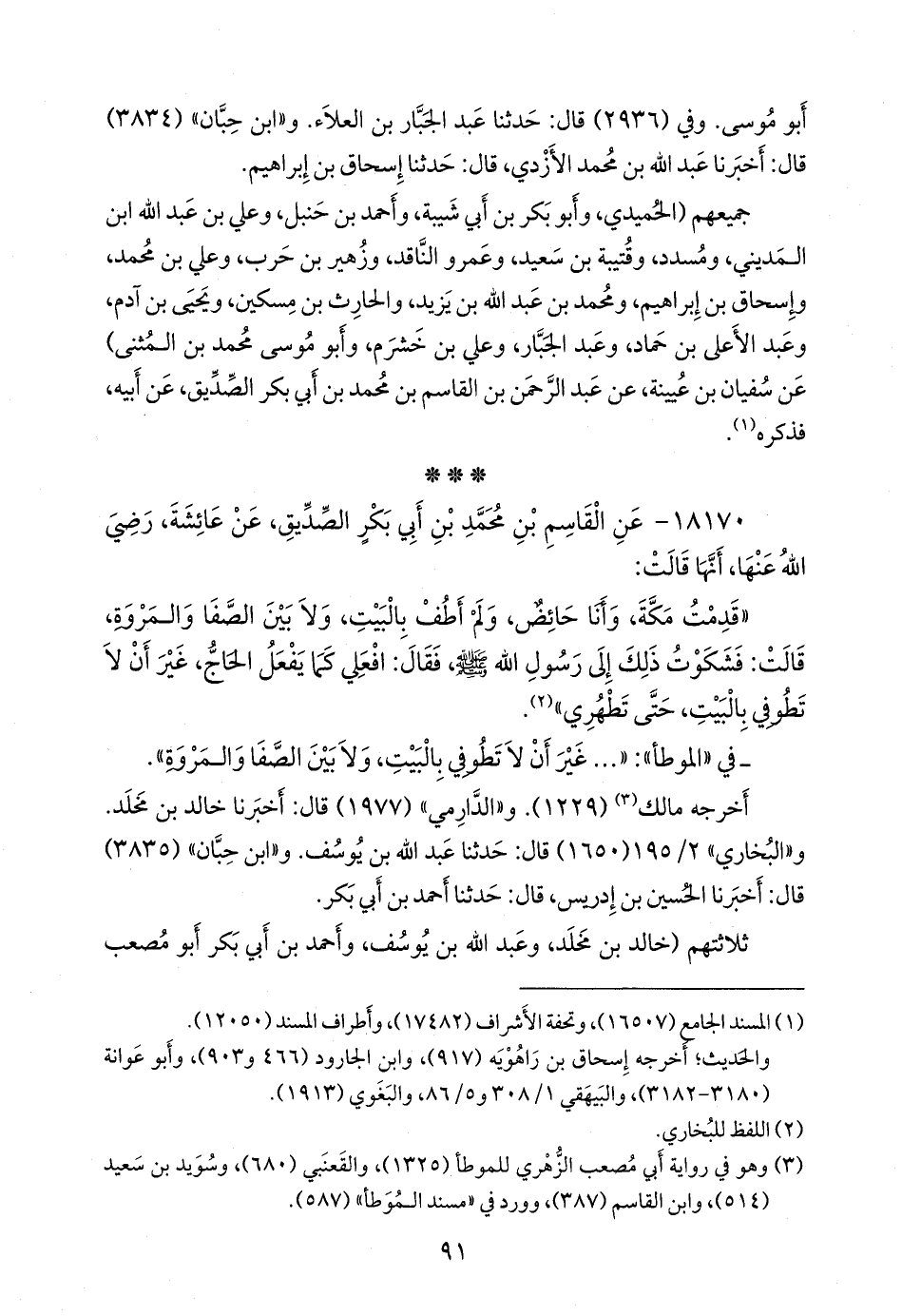 (¬٣) وهو في رواية أبي مصعب الزُّهْري للموطأ (١٣٢٥)، والقَعنَبي (٦٨٠)، وسويد بن سعيد (٥١٤)، وابن القاسم (٣٨٧)، وورد في «مسند الموطأ» (٥٨٧).