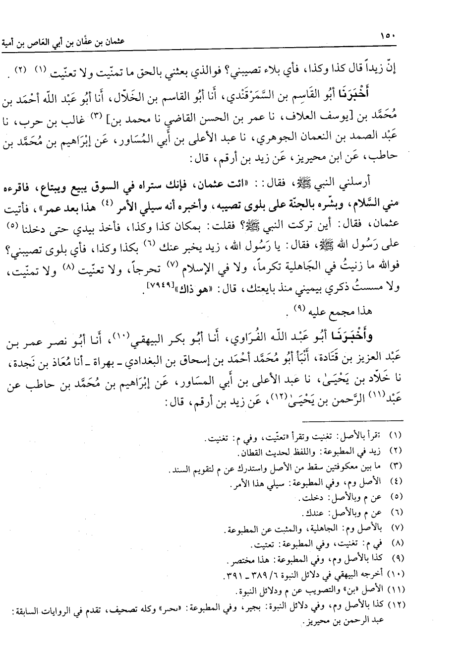 [7949] هذا مجمع عليه (9) وأخبرنا أبو عبد الله الفراوي أنا أبو بكر البيهقي (10) أنا أبو نصر عمر بن عبد العزيز بن قتادة أنبأ أبو محمد أحمد بن إسحاق بن البغدادي بهراة أنا معاذ بن نجدة نا خلاد بن يحيى أنا عبد الأعلى بن أبي المساور عن إبراهيم بن محمد بن حاطب عن عبد (11) الرحمن بن يحيى (12) عن زيد بن أرقم قال