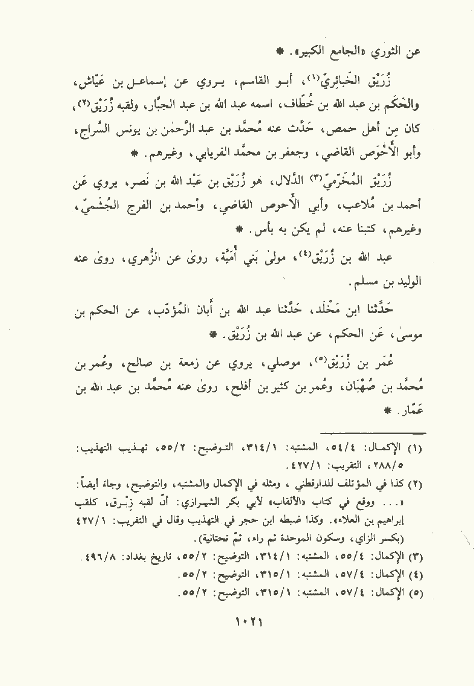 عُمَر بن زُرَيْق موصلي , يَرْوي عن زَمْعَة بن صالح , وعمر بن مُحمَّد بن صهبان وعمر بن كثير بن أفلح، رَوَى عنه مُحمَّد بن عَبد الله بن عمار.