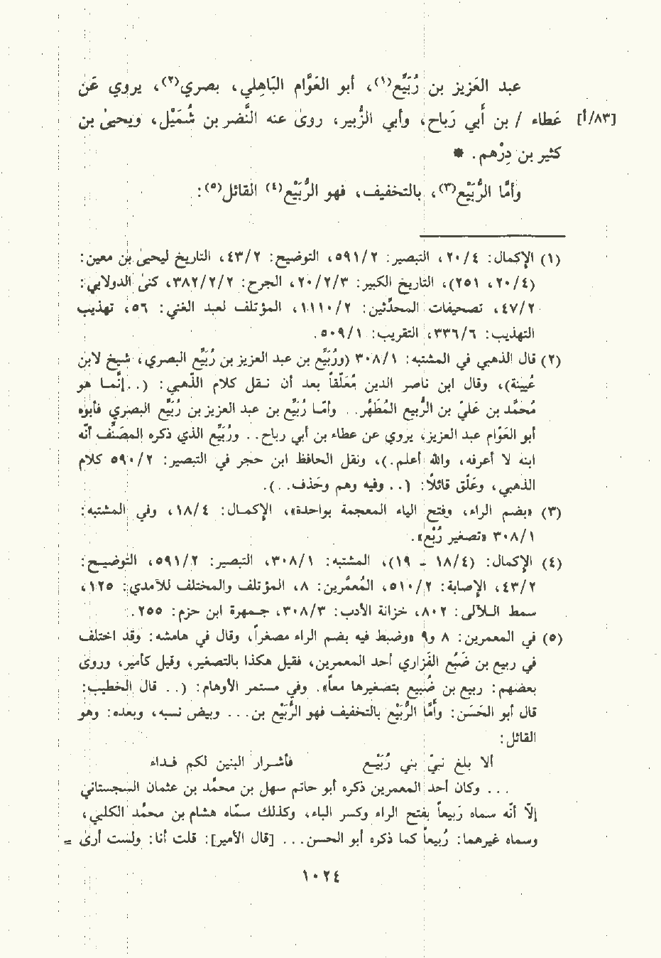 وأمَّا الرُّبَيْع بالتخفيف , فهو الرُّبَيْع القائل: