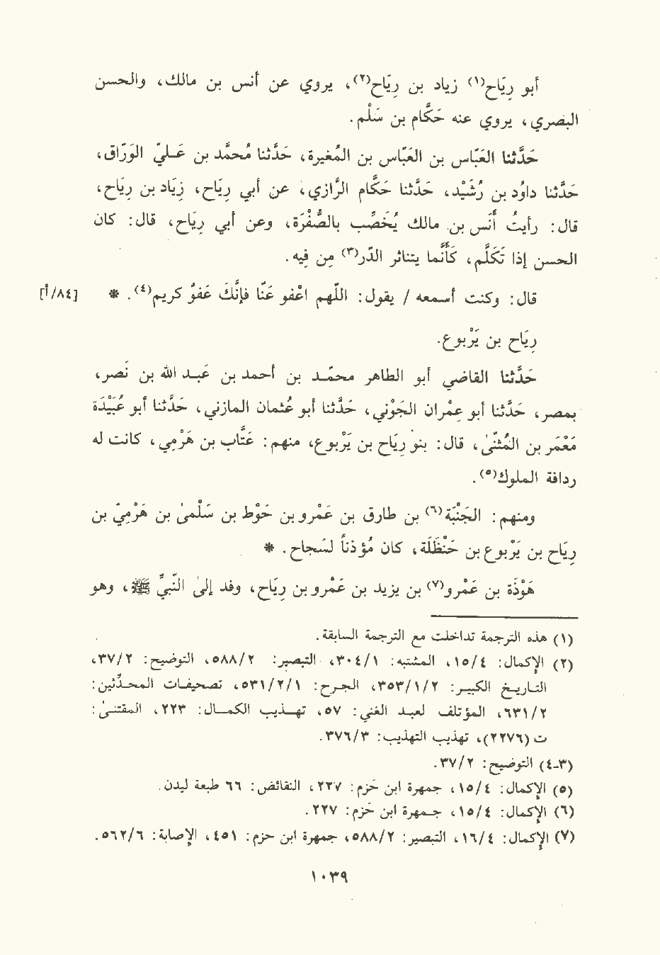 أبو رِيَاح زِيَاد بن رِيَاح , يَرْوي عن أنس بن مَالِك , والحَسَن البَصْريّ , يَرْوي عنه حَكَّام بن سَلْم.