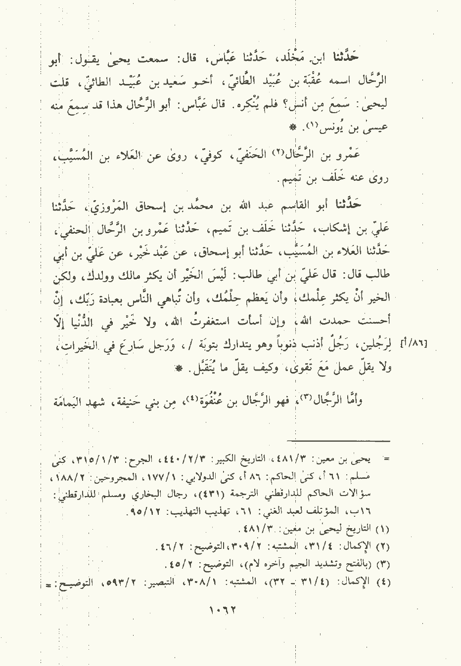 حَدَّثَنا ابن مَخْلَد , حَدَّثَنا عَبَّاس، قال: سَمعتُ يَحْيى يقول: أبو الرحال اسمه عُقْبَة بن عبيد الطَّائِي , أخو سعيد بن عبيد الطَّائِي , قلت ليحيى: سمع من أنس؟ فلم ينكره. قال عَبَّاس: أبو الرَّحَّال هذا قد سمع منه عيسى بن يُونُس.
