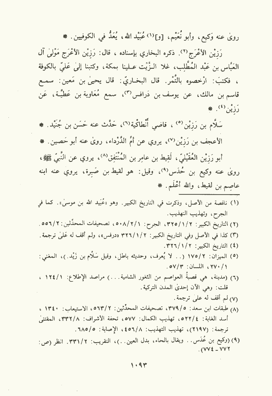 رَزِين الأَعْرج. ذكره البُخَاريّ بإسناده قال: رزين الأَعْرج مولى آل العَبَّاس بن عبد المطلب , غلا الزيبت علينا بمكة , وكتبنا إلى علي بالكوفة , فكتب: ارخصوه بالتمر. قال البُخَاريُّ: قال يَحْيى بن مَعِين: سمع قاسم بن مَالِك , عن يُوسُف بن درافس سمع مُعَاوية بن عَطِيَّة , عن رَزِين.