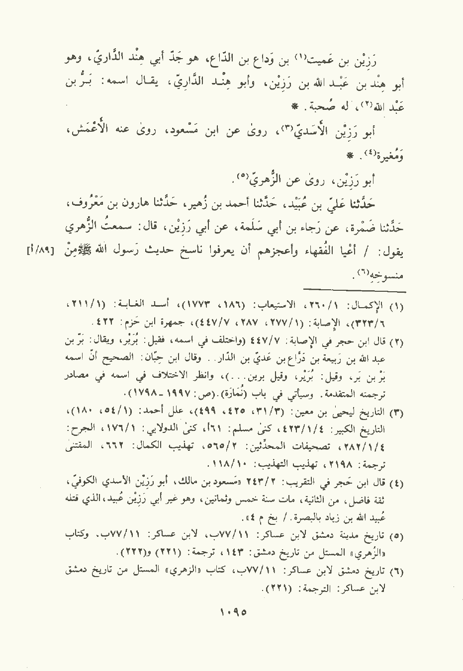 حَدَّثَنا علي بن عبيد , حَدَّثَنا أحمد بن زُهَير , حَدَّثَنا هارون بن معروف , حَدَّثَنا ضمرة , عن رجاء بن أبي سلمة، عن أبي رَزِين قال: سَمِعتُ الزُّهْريّ يقول: أعيا الفقهاء وأعجزهم أن يعرفوا ناسخ حديث رسول الله صلى الله عليه وسلم من منسوخه.