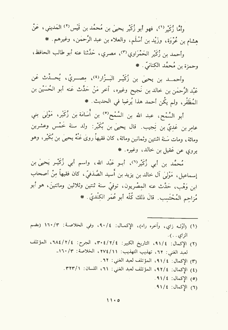 وأمَّا زُكَيْر , فهو أبو زُكَيْر يَحْيى بن مُحمَّد بن قَيْس المديني , عن هِشَام بن عُرْوَة وزيد بن أسلم والعلاء بن عبد الرَّحْمن , وغيرهم.