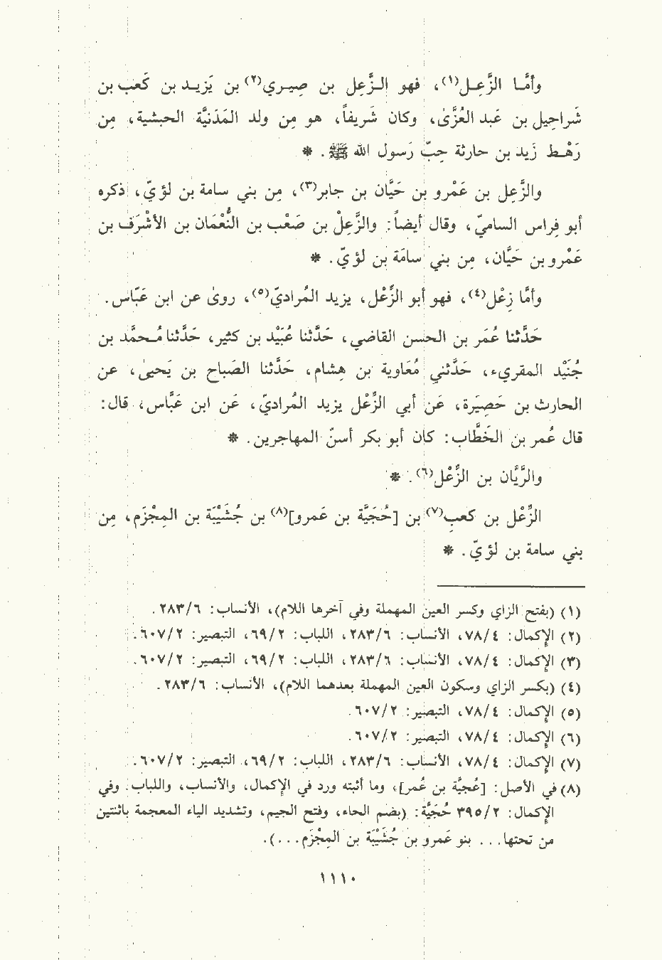 الزِّعْل بن كَعْب بن حُجَيَّة بن عَمْرو بن جُشَيْبَة بن المجزم من بني سامة بن لُؤَيّ.