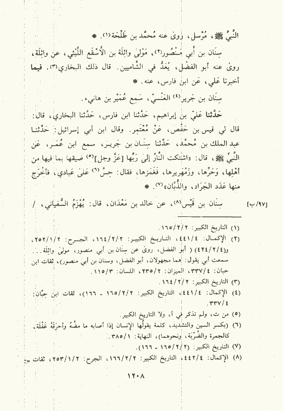 سِنَان بن قَيْس , عن خَالِد بن معدان قال: يهزم السفياني والجماعة مرتين , ثم يهلك. قال ذلك البُخَاريّ.