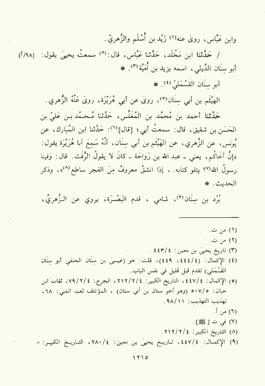 حَدَّثَنا ابن مَخْلَد , حَدَّثَنا عَبَّاس قال: سَمِعتُ يَحْيى يقول: أبو سِنَان الديلي , اسمه يزيد بن أمية.