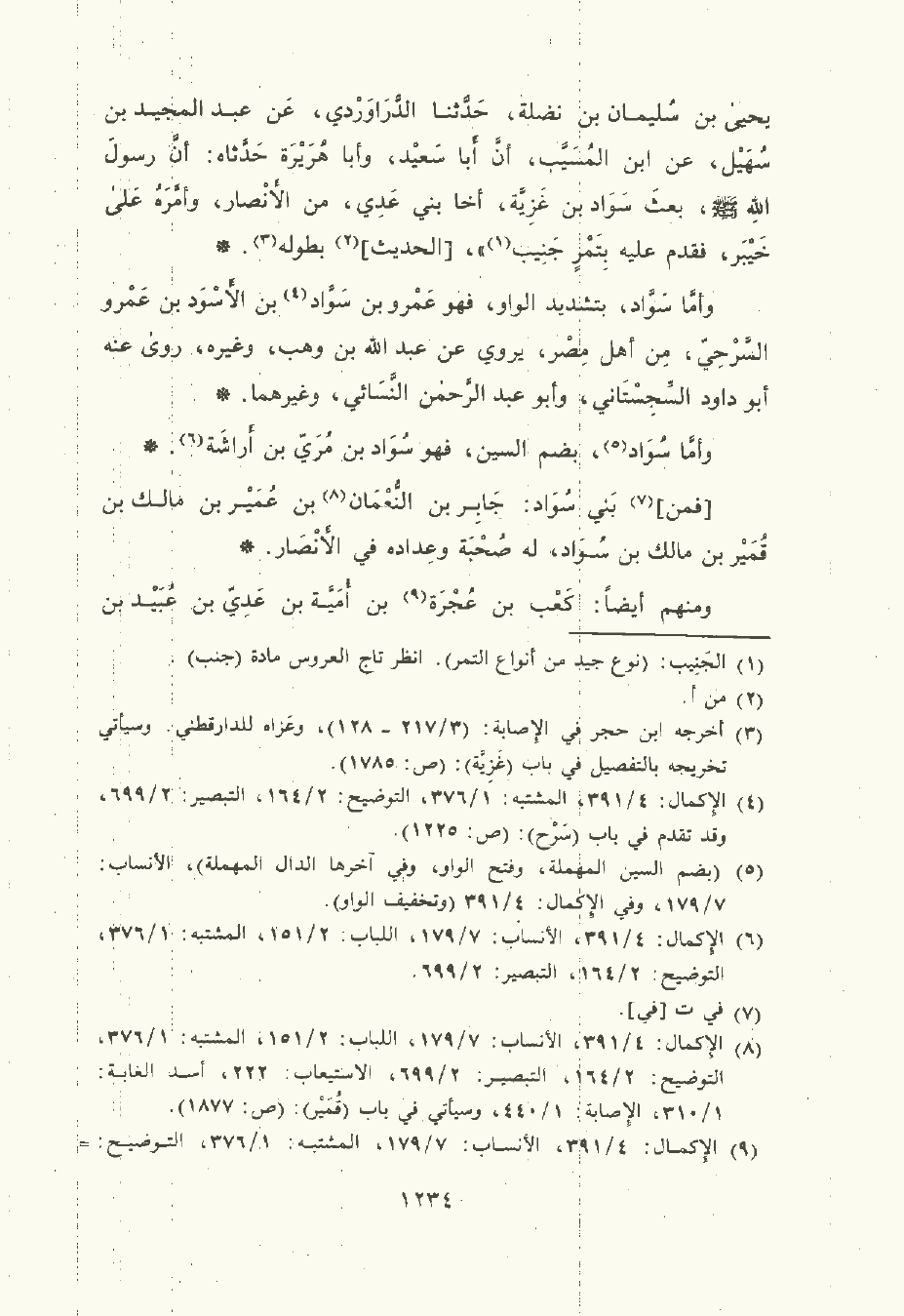 وأمَّا سَوَّاد بتشديد الواو , فهو عَمْرو بن سواد بن الأَسْود بن عَمْرو السرحي من أهل مِصْر , يَرْوي عن عَبد الله بن وهب , وغيره , رَوَى عَنْه أبو داود السِّجِسْتاني , وأبو عَبْد الرَّحْمن النَّسَائِيّ , وغيرهما.